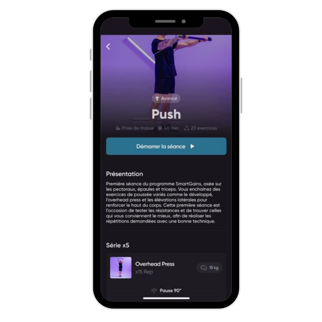 Découvrez l'application SmartWorkout, la première application de musculation pour élastiques qui vous permet de vous entraîner avec des programmes personnalisés, des vidéos guidées et un suivi des progrès en temps réel.