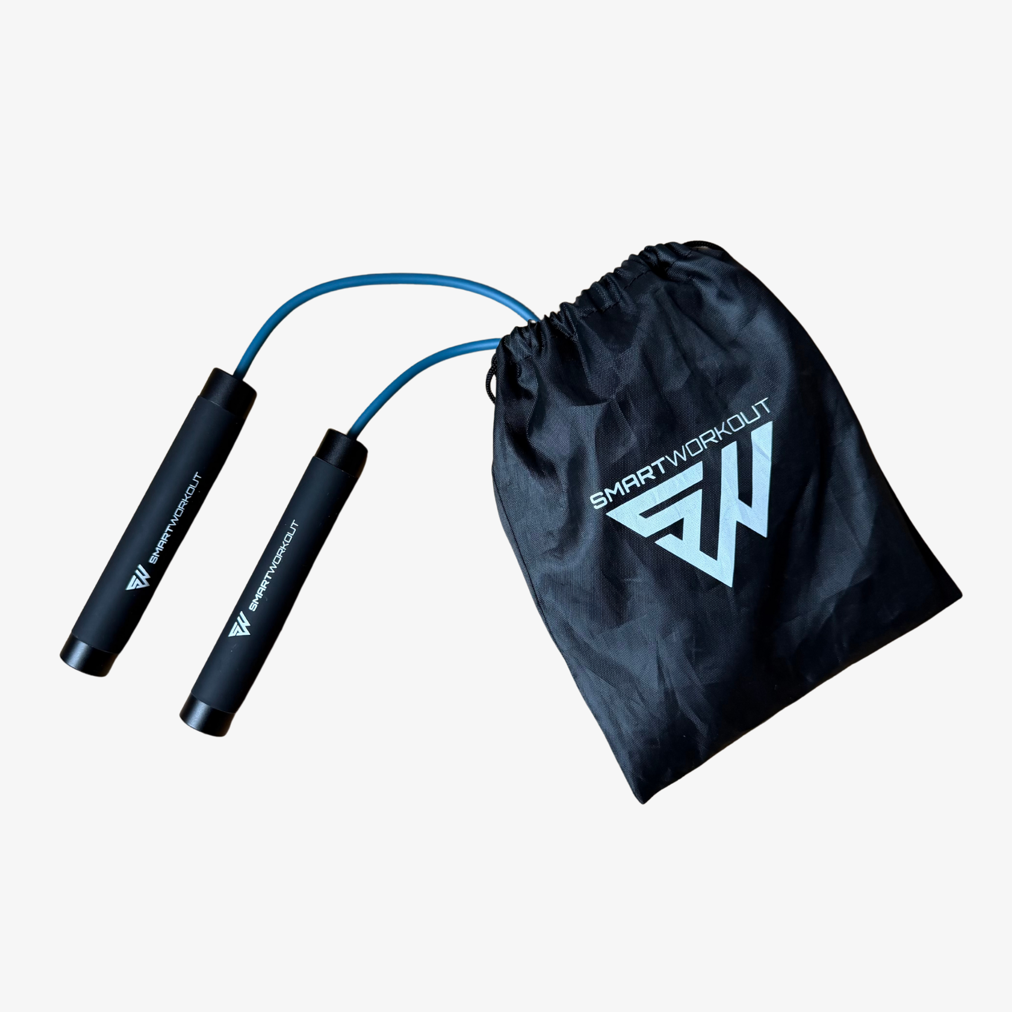 Poignées en aluminium avec grip silicone, lestées et réglables, câble lisse de 3 m avec roulements à billes.